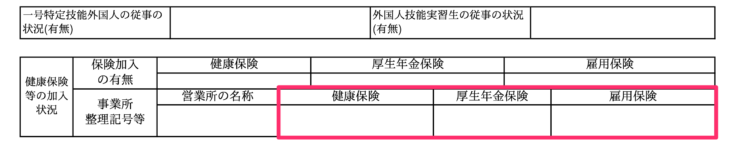 の2つの書類では、法人の社会保険(健康保険・厚生年金)と雇用保険の番号の記載が求められます。