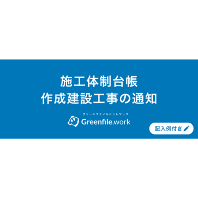 施工体制台帳作成建設工事の通知書または施工体制台帳作成通知書は、施工体制台帳を要する工事を行う際、一次請負業者に交付する必要のある安全書類(グリーンファイル)です。 したがって元請業者が作成する書類となり、交付することと
