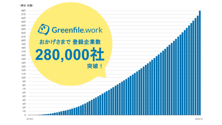安全書類電子化サービス「Greenfile.work(グリーンファイル ドット ワーク)」の登録企業数が280,000社を突破したことをお知らせします。