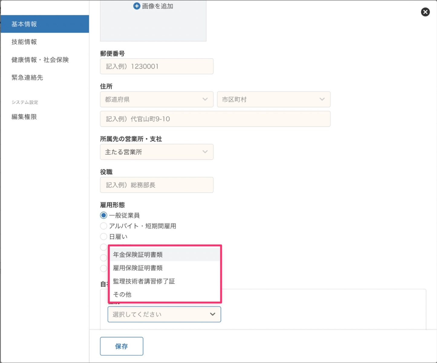 Greenfile.work上の自社従業員である証明書類の種別から健康保険証明書類項目を削除します。