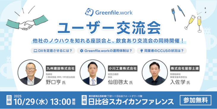 今後、Greenfile.work活用方法はもちろんのこと、CCUS連携や現場の運用体制構築など、皆様の現場管理・業務効率化に役立つコンテンツやセミナーの開催を行なっていく予定です!