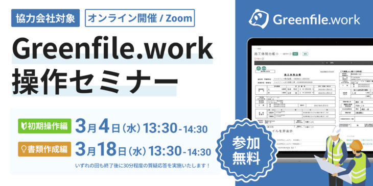 このたび、協力会社向けの「Greenfile.work操作セミナー」を、開催することが決定いたしました!