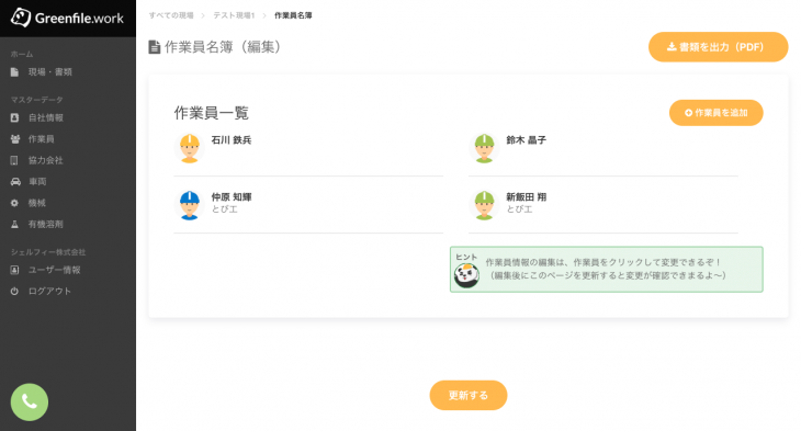 ただし、作業員情報の編集を行いたい場合は作業員マスターデータから行う必要があるので注意してください。